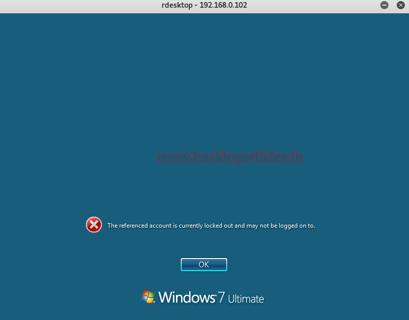 Open the terminal and type “rdesktop 192.168.0.102 ” when you will get target screen, enter username and password which have retrieve from brute force.